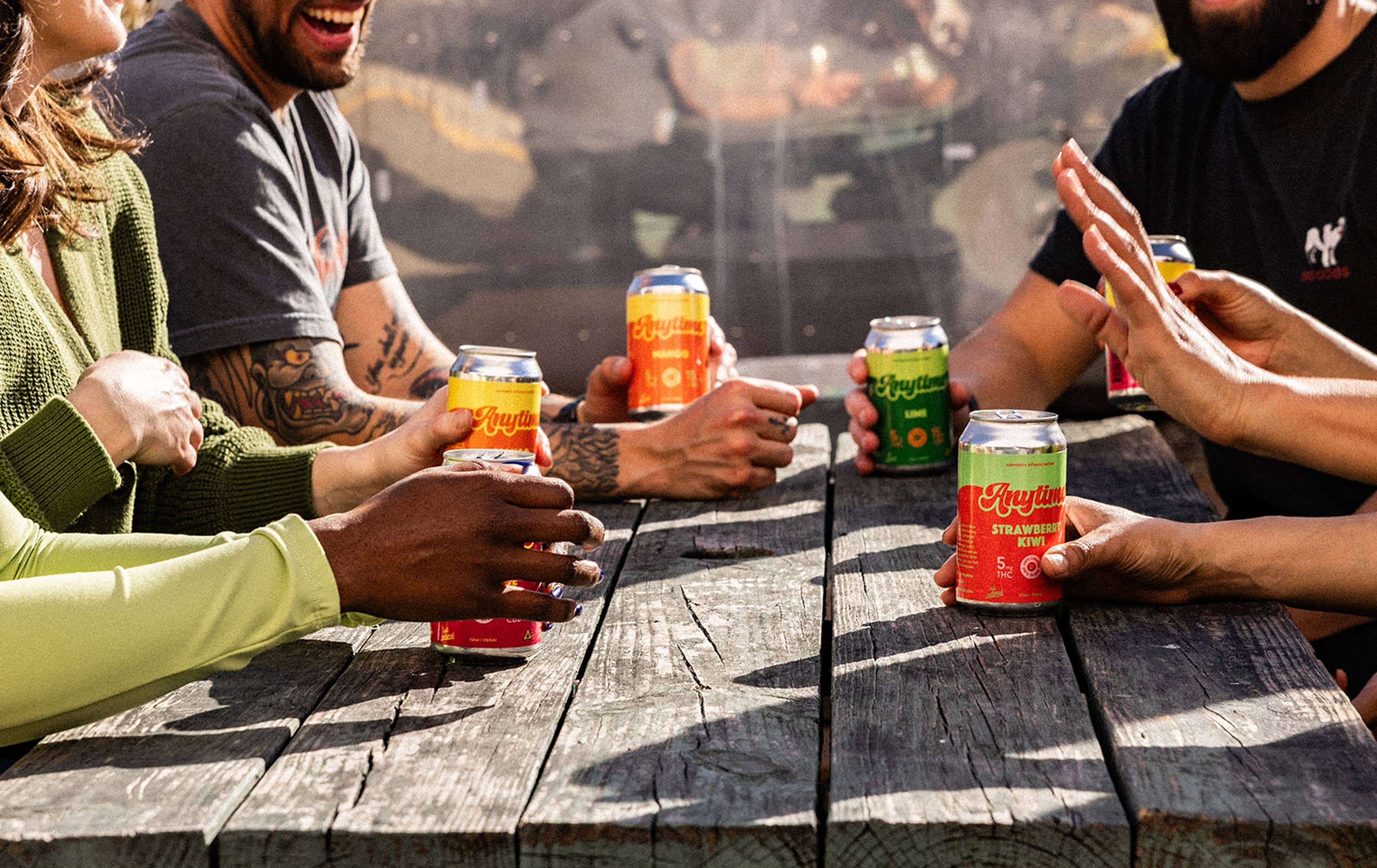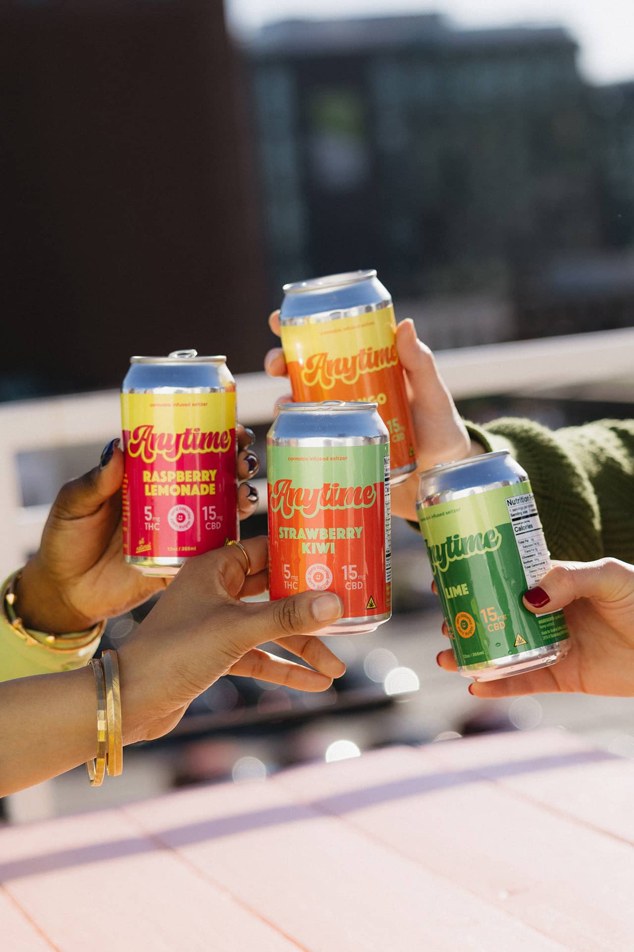Anytime is a microdosed infused seltzer. Our full spectrum formulation is intended to give you a functional, social buzz like you might feel with a glass of wine or can of beer after a long day. But without the hangover.